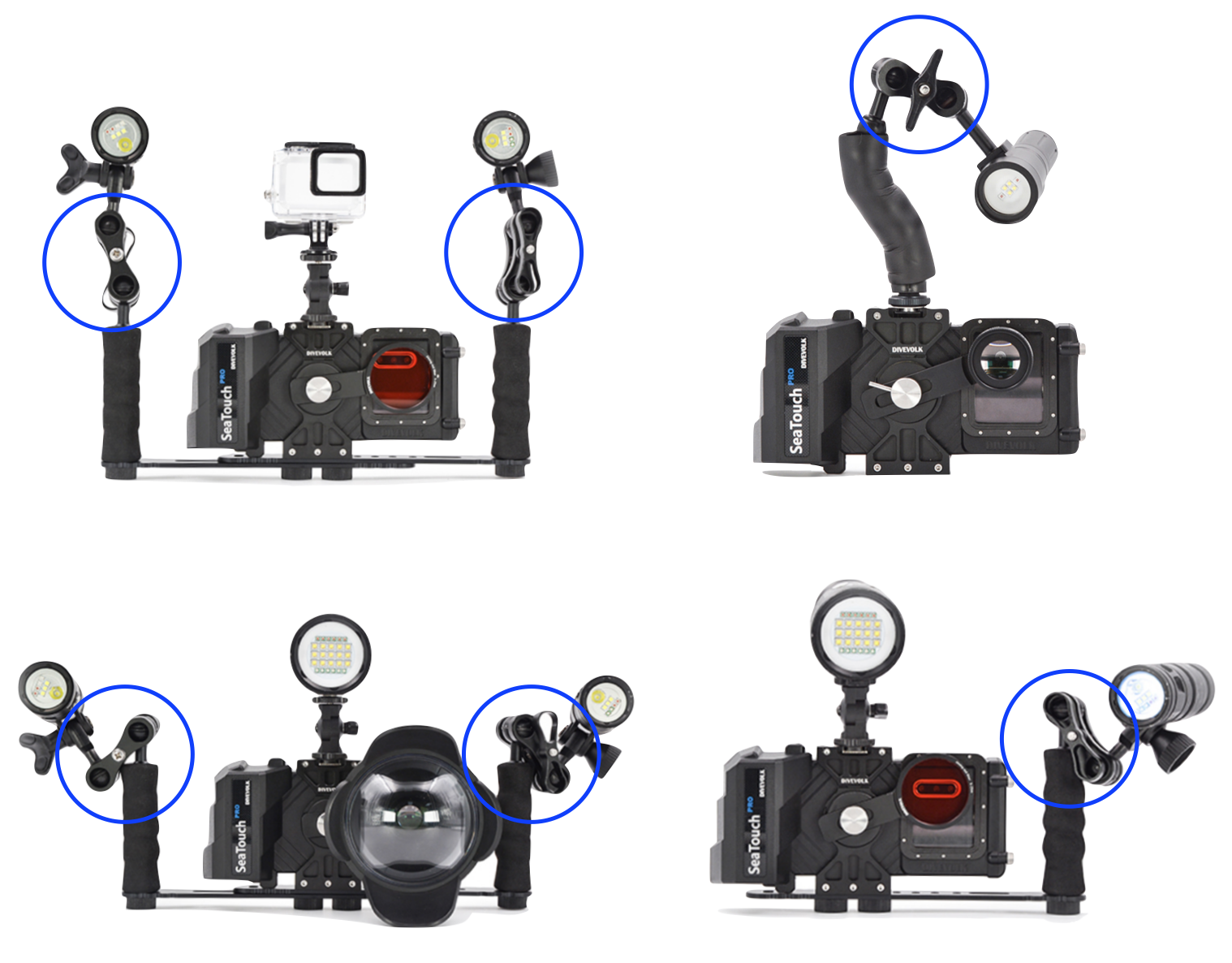 - 기존에 갖고 있는 스마트폰을 수중 카메라 하우징의 모니터로 활용 가능 (SeaLink + SeaTouch 하우징 + Expansion Clamp 필요)