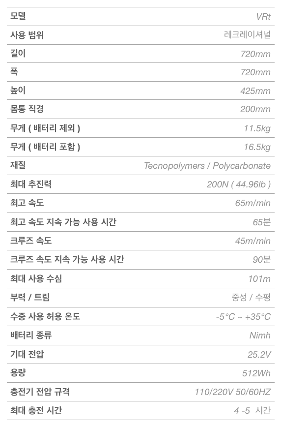 - 보급형 DPV로 다이브 리조트 / 센터에서 렌탈용으로 구비 용이