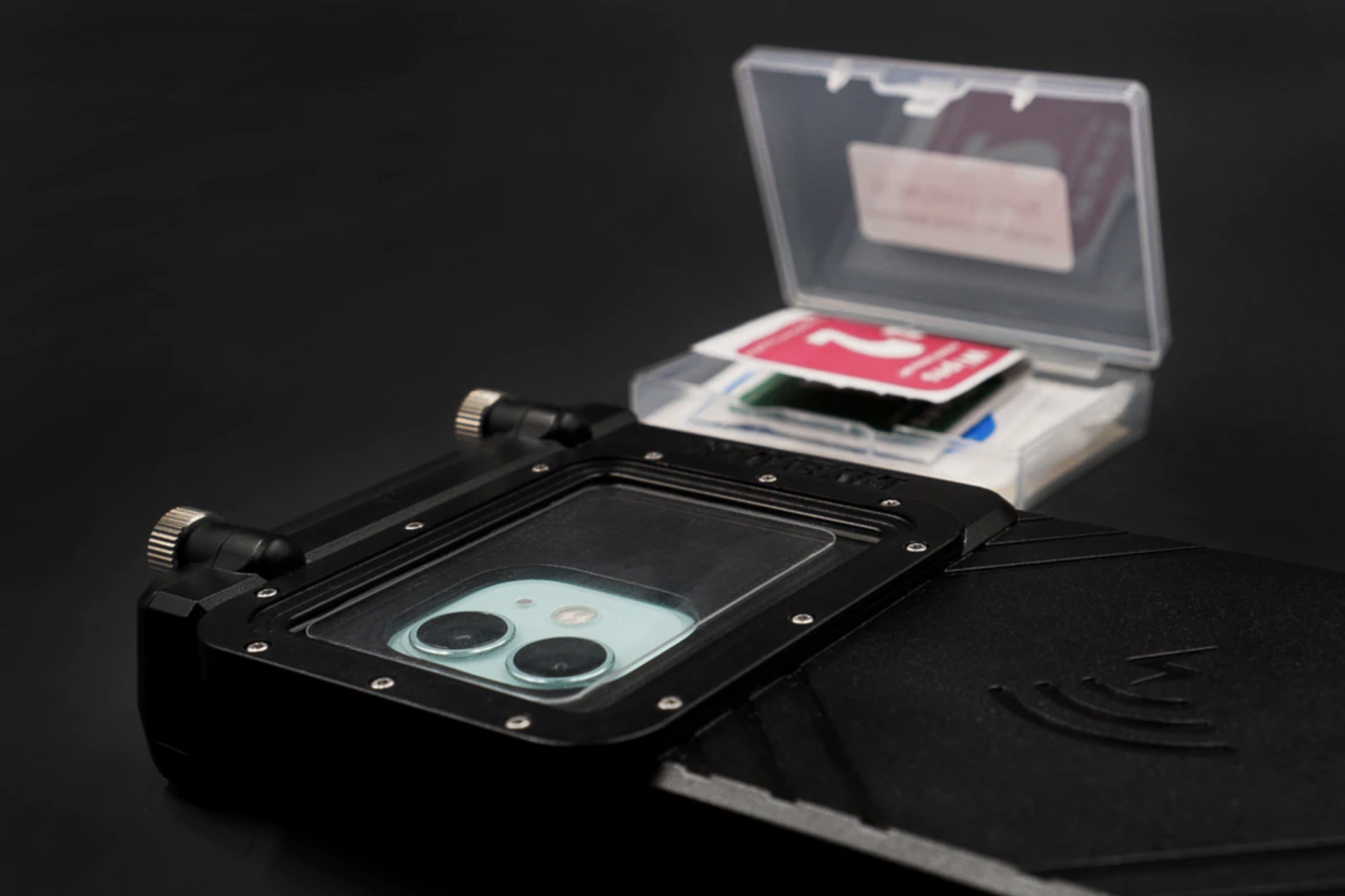 - 수중 카메라에 부착해 카메라 사진 촬영과 동시에 스마트폰으로 비디오 촬영 가능