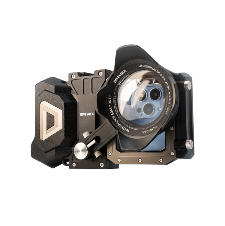 - DIVEVOLK 광각 렌즈, 마크로 렌즈, 레드 필터, 퍼플 필터 및 타사 전문가용 렌즈 장착 가능