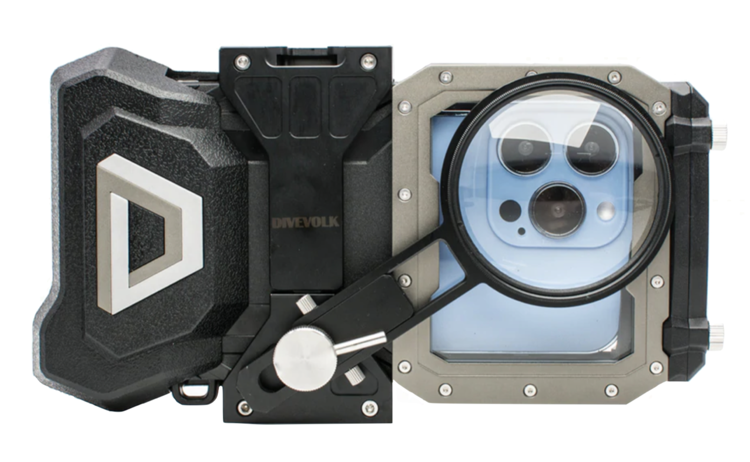 - DIVEVOLK 광각 렌즈, 마크로 렌즈, 레드 필터, 퍼플 필터 및 타사 전문가용 렌즈 장착 가능