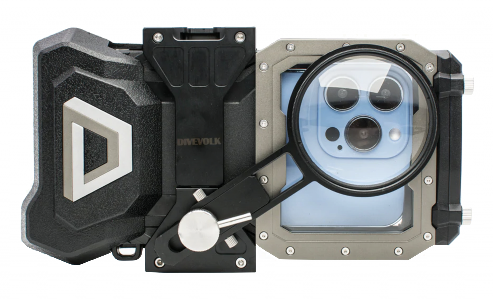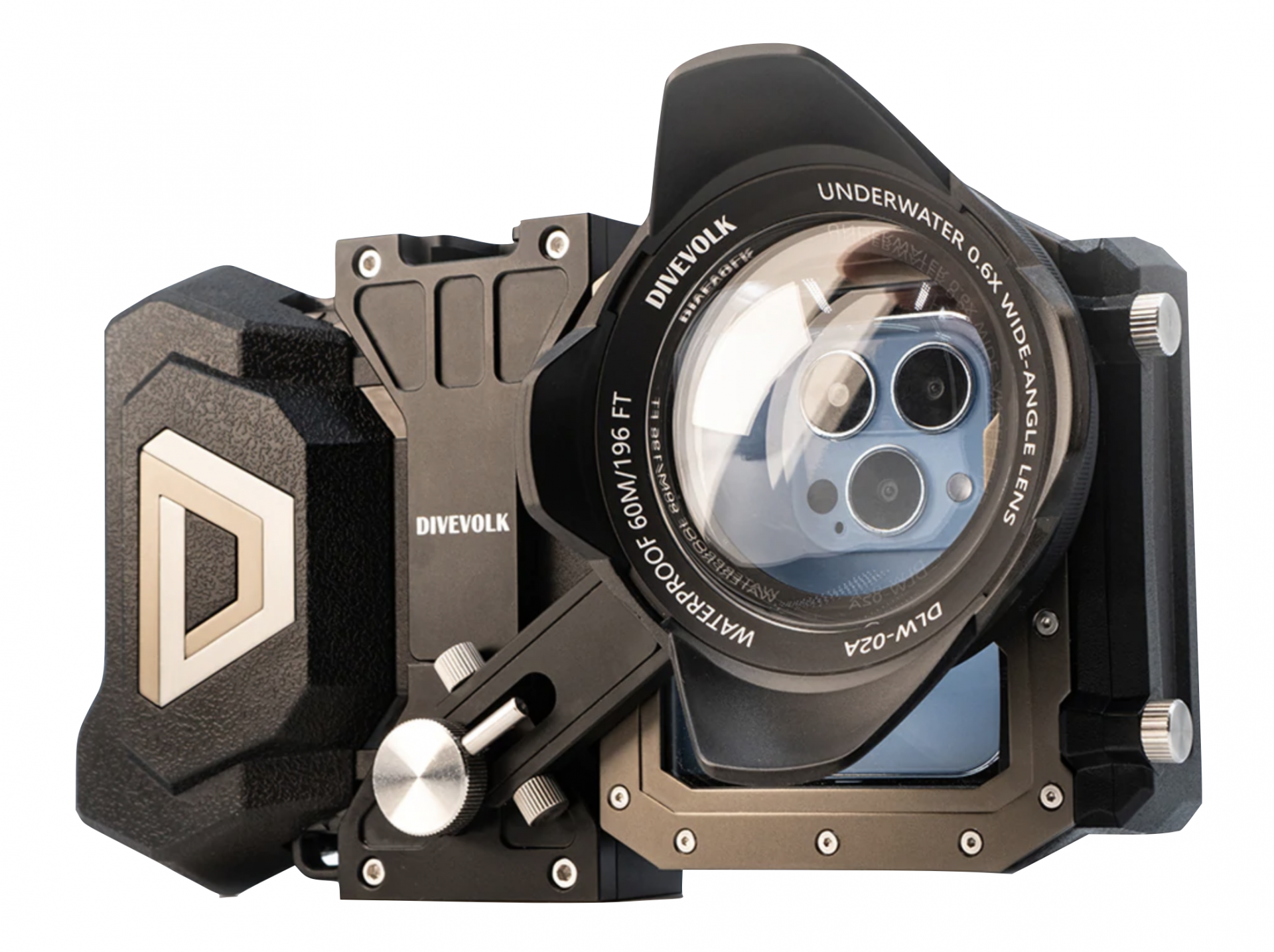 - DIVEVOLK 광각 렌즈, 마크로 렌즈, 레드 필터, 퍼플 필터 및 타사 전문가용 렌즈 장착 가능