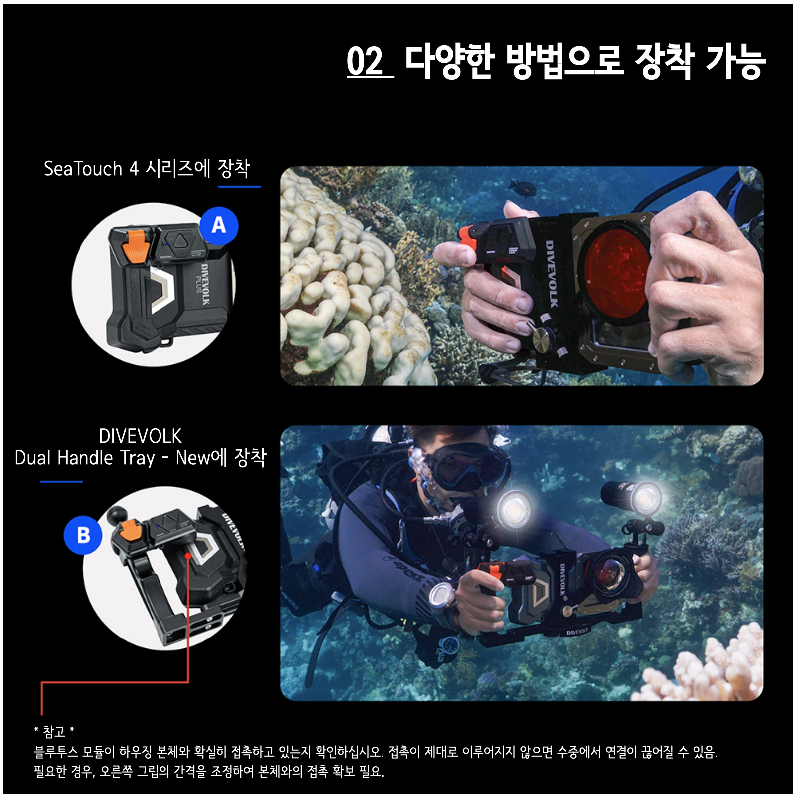 - 구매한 제품의 A/S를 위해서 제품 구매 후 "Divevolk - Korea 제품 정품 등록" 카테고리에서 정품 등록을 해야합니다. ( https://www.divetechkorea.com/divevolkkorearegister )