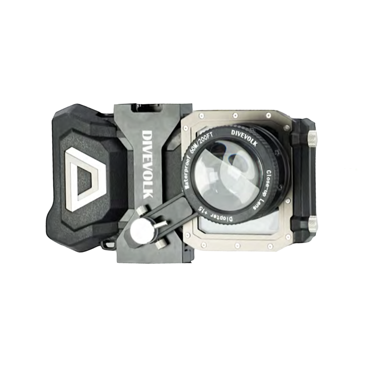 - DIVEVOLK 광각 렌즈, 마크로 렌즈, 레드 필터, 퍼플 필터 및 타사 전문가용 렌즈 장착 가능