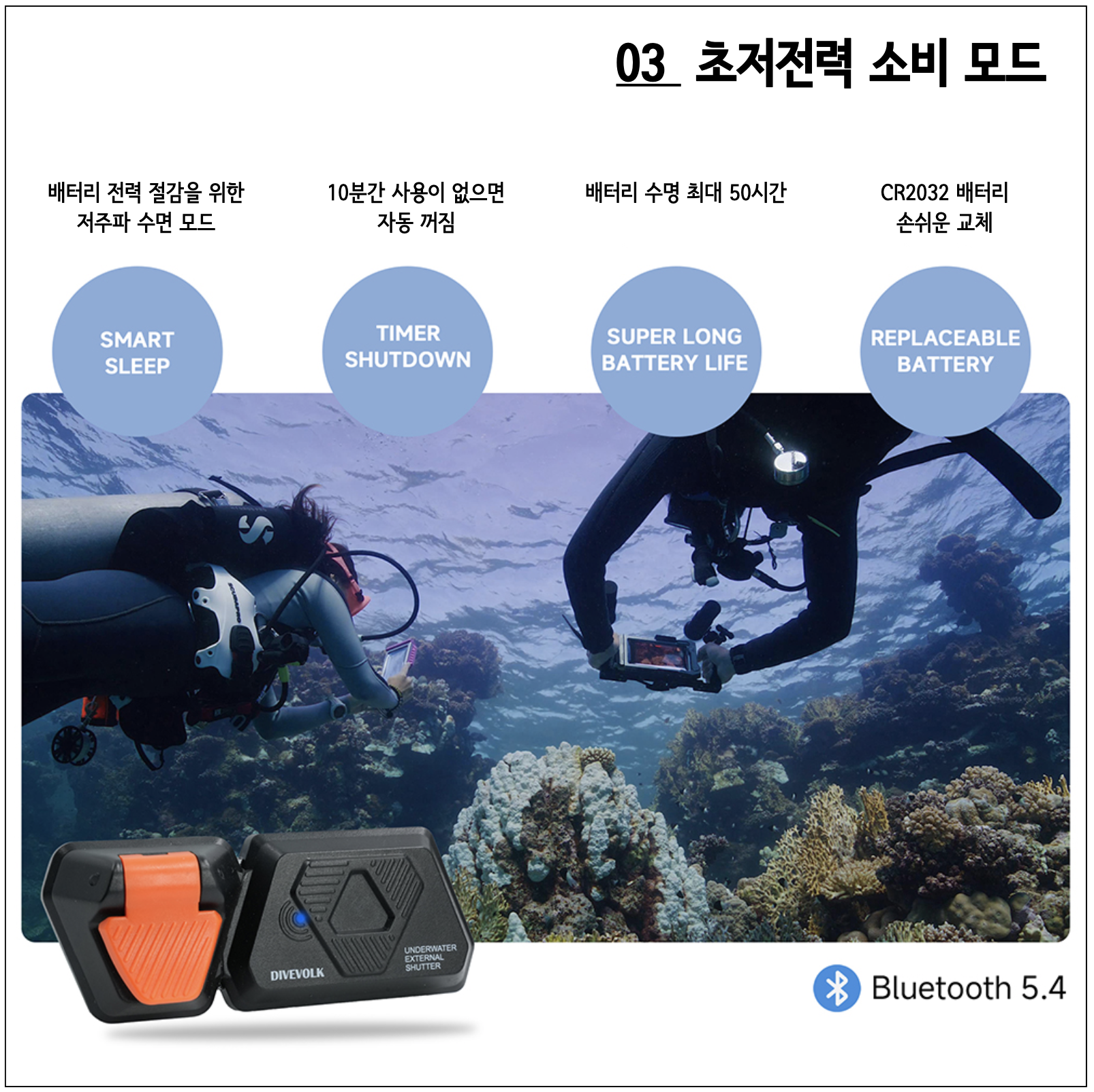 - 배터리 잔량 낭비를 줄이기 위해 수중에서는 "비행기 모드" 상태를 유지하시길 권합니다.